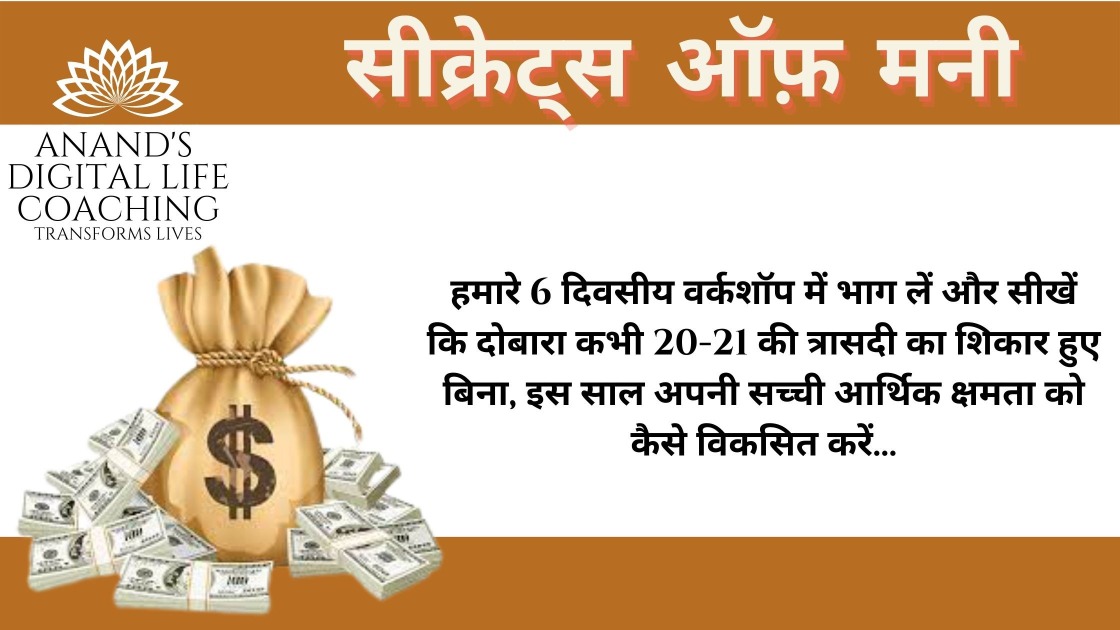 'इसमें आपकी कोई गलती नहीं है।'जी हाँ ! विश्व में ज्यादातर लोग समृद्धि के गुप्त रहस्यों को नहीं जानते, इसीलिए विश्व की 99% दौलत विश्व के सिर्फ 1% लोगों के पास है।'Anand Dhruw Academy' द्वारा प्रस्तुत 'सीक्रेट्स ऑफ़ मनी' यह ऑनलाइन कोर्स समृद्धि के सूक्ष्म और अति महत्वपूर्ण रहस्यों को बड़ी सरलता और व्यावहारिक रूप से आपके सामने रखता है।