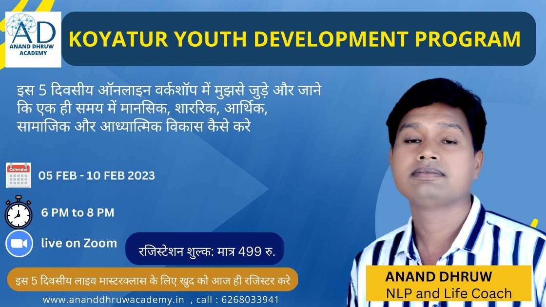 इस 5 दिवसीय ऑनलाइन वर्कशॉप में मुझसे जुड़े और जाने कि एक ही समय में मानसिक, शाररिक, आर्थिक, सामाजिक और आध्यात्मिक विकास कैसे करे